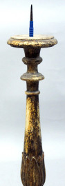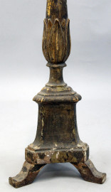 Torciere in legno intagliato e dorato, fusto a balaustro, base a tripode, fine XVIII secolo, alt. cm 74, (difetti).