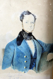 Tre ritratti raffiguranti gentildonna, gentiluomo e vedova, tecnica mista su carta, cm 24x19, firmati e datati, entro cornici.