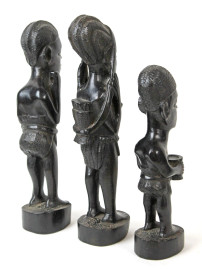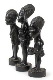 Tre sculture africane in ebano, altezza max cm 30, XX secolo.