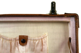 Valigetta Vintage in pelle, cm 18x32,5x11,5, (mancante tracolla, segni del tempo)