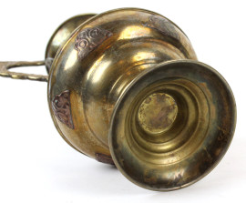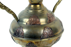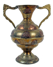 Vaso arabo in metallo dorato e rame, a due manici, cm h 30