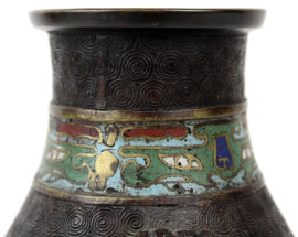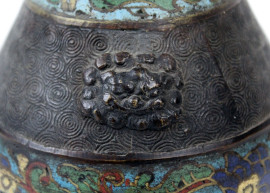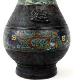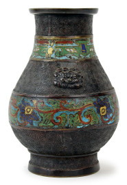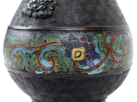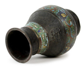 Vaso in bronzo e smalti cloisonné, Cina inizi XX secolo, cm h 18, (difetti, segni del tempo)