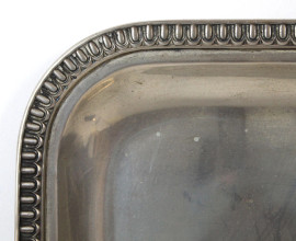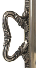 Vassoio in argento, di forma rettangolare a fondo liscio, bordo e manici cesellati, cm 55x34, gr.2048