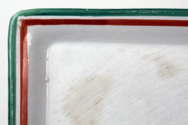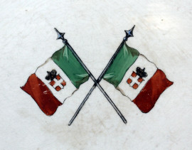 Vassoio Richard-Ginori con doppia bandiera del Regno d'Italia, cm 32,5x23,5, (difetti e resaturi).