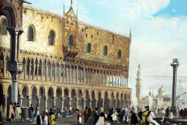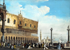 Veduta di Venezia, gouache su carta riportata su tela, cm 23,5x33,5, entro cornice