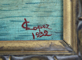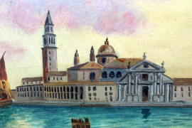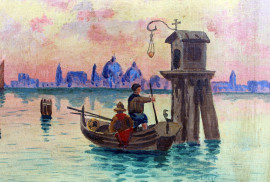 Veduta di Venezia, olio su tavola, cm 30x55, firmato C. Lopez, entro cornice