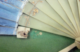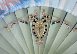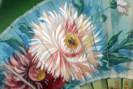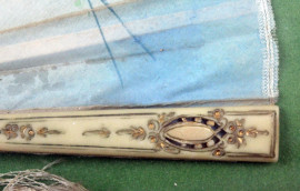 Ventaglio dipinto a mano entro teca, cm 36x64, XX secolo, (difetti).