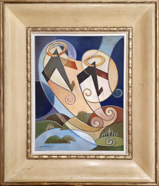 Aeropittore del Novecento, Aerei in volo sulla laguna, olio su tavola del Maestro Achille Boni (XX sec.), cm 32x25, firmato in basso a sinistra, entro cornice
