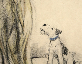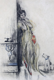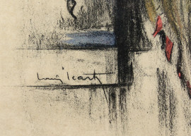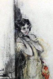 Al telefono, tecnica mista su carta, cm 17x12,5, firmato, entro cornice