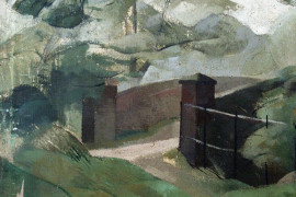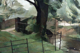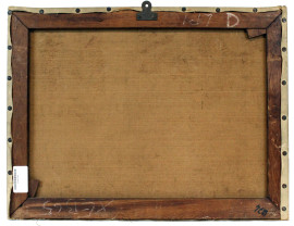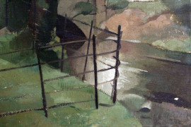 Albero con staccionata, olio su tela, cm 46x60,5, XX secolo, (lievi difetti).