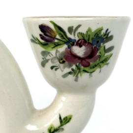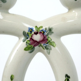 Andlovitz Guido, candeliere a quattro fiamme in ceramica, decori policromi di fiori e particolari dorati, cm h 20, manifattura Lavenia.
