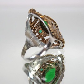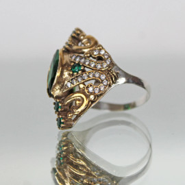 Anello in argento dorato, intarsi in varie pietre pregiate, gr. tot. 8