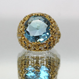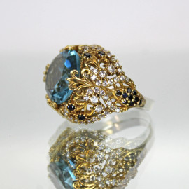 Anello in argento dorato, intarsi in varie pietre pregiate, gr. tot. 8,7