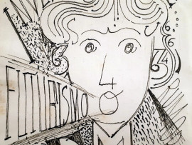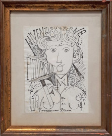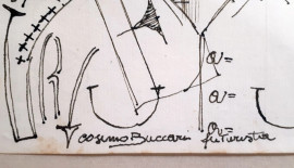 Artista futurista del Novecento, Figura con parole in libertà, tecnica mista su carta del Maestro Cosimo Buccari, cm 20x14,5, firmato Cosimo Buccari Futurista in basso al centro