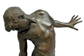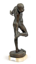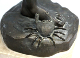 Bambino morso da un granchio, scultura in mertallo brunito, cm h 52, base in marmo.