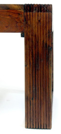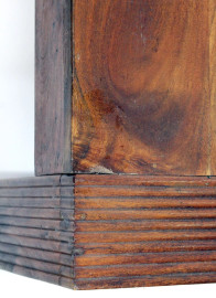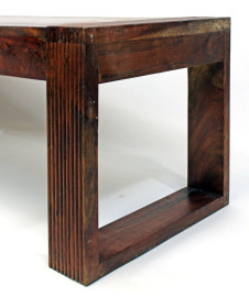 Basso tavolino di linea rettangolare in mogano, cm h 46x121x45,5