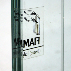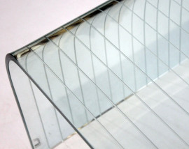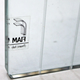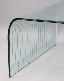 Basso tavolo serie rialto in vetro curvato, XX secolo, Fiam, cm h 36x131x70.
