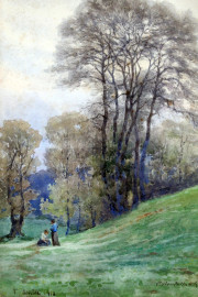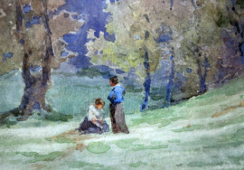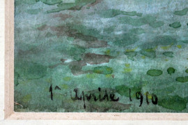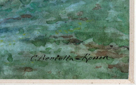Scorcio di Villa Giulia, acquarello su carta, cm 33x23, entro cornice.