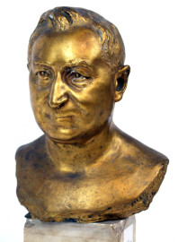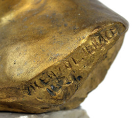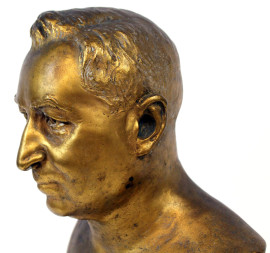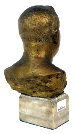 Busto d'uomo, scultura in ottone, cm h 30,5, firmato, base in marmo ( altezza base cm 9,5), (difetti).