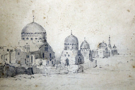 Cairo, sepolcri dei Kalifi, matita su carta, cm 11x16,5, siglato, entro cornice.