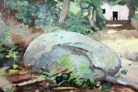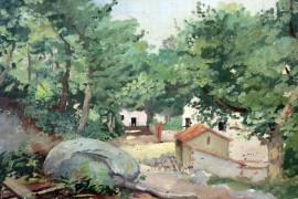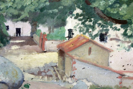Campagna romana, olio su cartone telato, cm 26x34, firmato, entro cornice.