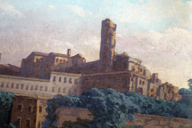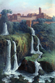 Cascate di Tivoli, tempera su tela, cm 81x51,5, firmato, entro cornice.
