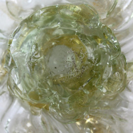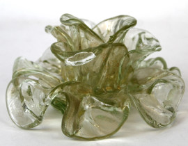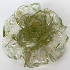 Centrotavola a foggia di fiore in vetro di Murano, cm h 8, diam. cm 14,5, marcato Archimede Seguso alla base, (piccole sbeccature).