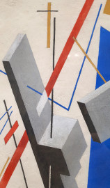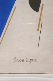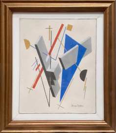 Composizione suprematista russa, tecnica mista su cartone, cm 30x25, firmato Yakov Orlov (XX sec.) in caratteri cirillici