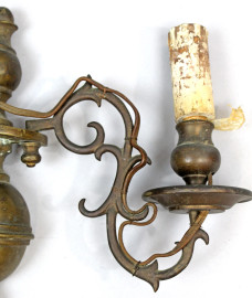 Coppia di appliques in bronzo a due luci, inizi XX secolo, cm h 23