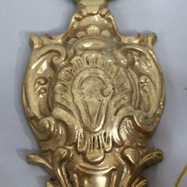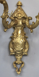Coppia di appliques in bronzo dorato e cesellato, a due luci, altezza cm 32