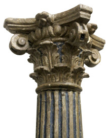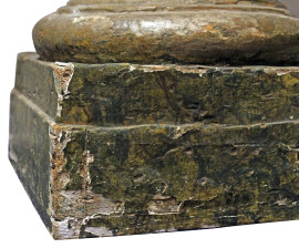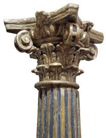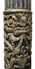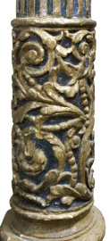 Coppia di colonne, Veneto, XVIII secolo, in legno intagliato, dorato e laccato, capitello corinzio poggiante su fusto scanalato e scolpito a motivi vegetali, base quadrata, altezza cm 224, (difetti e segni del tempo).