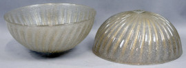 Coppia di plafoniere in vetro di Murano, altezza cm 17,5, diametro cm 40.