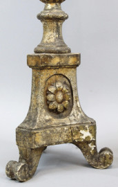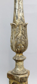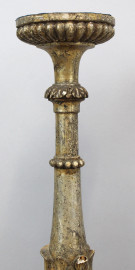 Coppia di torcieri in legno intagliato e dorato, XVIII secolo, cm h 79, (difetti).