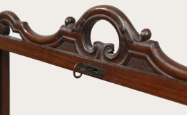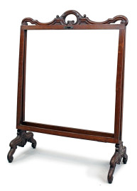 Copricamino apribile in legno, cimasa intagliata a rocailles e volute, piedi sagomati, cm h 97x69,5x35, XIX secolo, (segni del tempo, mancanze).