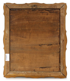 Cornice a guantiera in legno dorato ed inciso, XIX secolo, misure ingombro cm 62x52, misure luce cm 49,5x40, (difetti).
