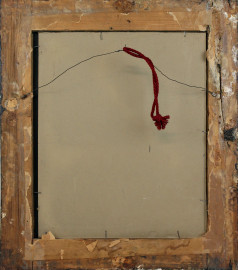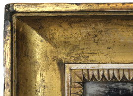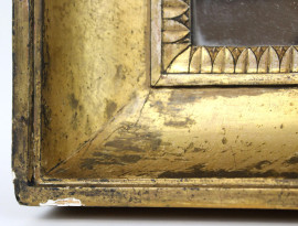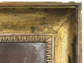 Cornice del XIX secolo, in legno dorato ed intagliato a motivo di palmette, misure ingombro cm 49x55, misure luce cm 39,5x33.