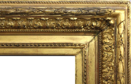 Cornice in legno intagliato e dorato, XIX secolo, misure ingombro 118x144,5, misure luce cm 88x115, (lievi difetti).