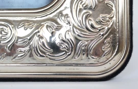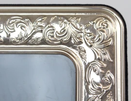 Cornice portafoto in argento con decoro a motivi floreali, cm 26x21