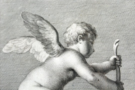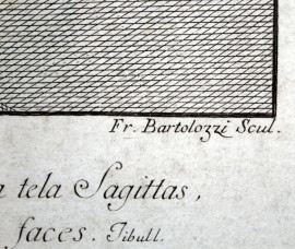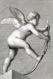 Cupido, incisione su carta, cm 32x25, inventore Marcantonio Franceschini (1648-1729), scultore Francesco Bartolozzi (1727-1815), entro cornice.