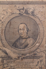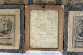 Dieci stampe raffiguranti busti di uomini illustri e religiosi toscani, carta applicata su tela, cm 25x32,8, XIX secolo, (difetti).