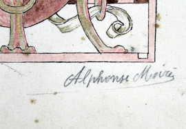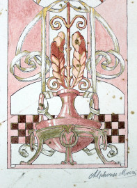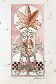 Disegno liberty, tecnica mista su carta, cm 35x29, firmato, entro cornice.