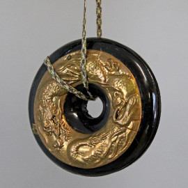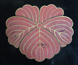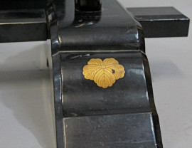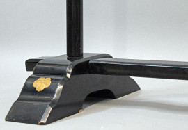 Espositore per kimono entro scatola originale in legno laccato nero, decoro floreale rosso, arte orientale, XX secolo, cm h 190x28x17, (segni del tempo).