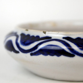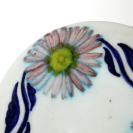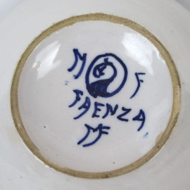 Faenza - Melandri Focaccia, cofanetto in porcellana bianca con decoro floreale e blu, cm h 4,5, diam. cm 9,5, (restauro su coperchio).
