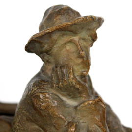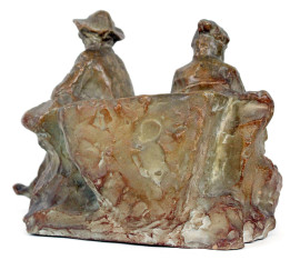 Coppia seduta in meditazione, scultura in terracotta, cm h 20x27x16.
