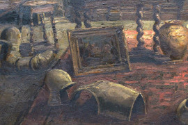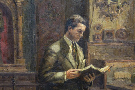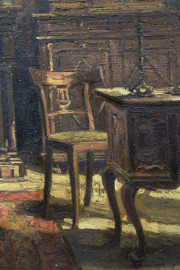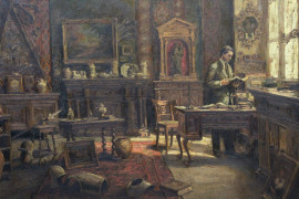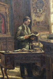 L'antiquario, olio su tavola, cm 51x65, entro cornice.