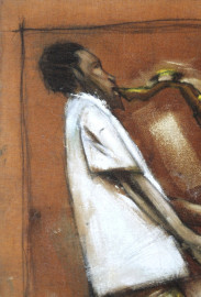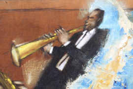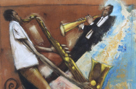 Il jazz, olio su tela applicata su tavola, cm 33x42, XX secolo.