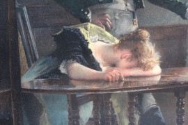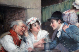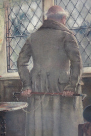 Interno con figure, stampa a colori, cm 63x41, nord Europa, XIX secolo, entro cornice.