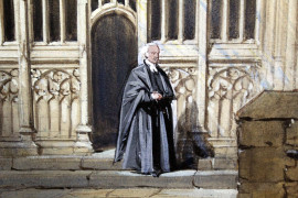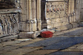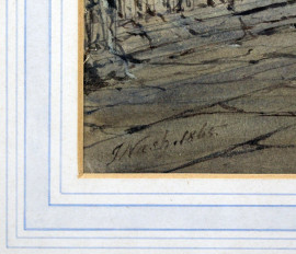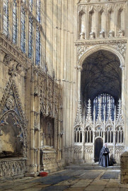 Interno dell'Abbazia di Westminster, acquarello su carta, cm 53x40, firmato e datato J. Nash 1865, entro cornice.