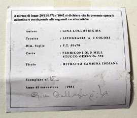 Ritratto di bambina indiana, litografia a quattro colori, es. 15/200, cm 70x50.