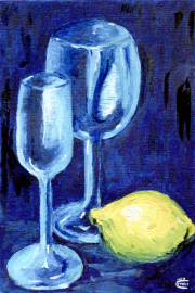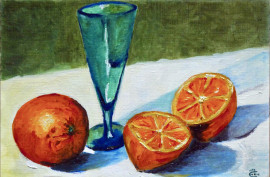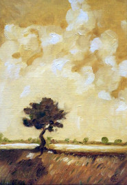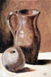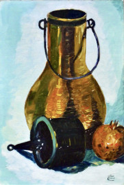 Lotto composto da sette dipinti a olio su cartone telato raffiguranti nature morte e un paesaggio, ciascuno cm 24x16, firmati